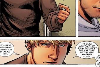 Cette semaine est sorti le neuvième numéro de Avengers: The Children’s Crusade avec une belle surprise à l’intérieur : un baiser de la mort qui tue entre Wiccan et son boyfriend Hulkling, le tout sur quasiment une page ! Et si ce n’était pas suffisant (en tout cas pour moi ça ne l’est jamais), nous avons même droit à une allusion à un hypothétique mariage. Il semble que Marvel veuille passer à la vitesse supérieure pour aborder la question LGBT, parallèlement à la relation Kate Kane/Maggie Sawyer et le mariage de Kevin Keller, les associations puritaines vont se tirer les cheveux (c’est déjà le cas d’ailleurs). Je vous rappelle que Avengers: The Children’s Crusade est nominé pour les GLAAD Awards aux côtés des deux autres titres pré-cités. Cela va être chaud bouillant encore cette histoire !