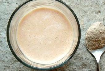 1 sachet de boisson hyperprotéinée saveur orange - pamplemousse + 2 cc de Lucuma.