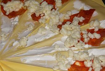 Etalez le Pesto Rosso sur les crêpes divisées en part et roulez-les sur elle même piquez-les d'un pique en bois à déguster froid.