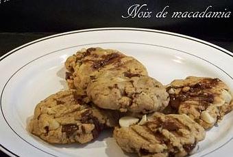 Afin de leur apporter un peu plus de croquant, j'ai rajouté des noix de macadamia à ces cookies et j'ai préféré faire de grosses pépites de chocolat, type shunk, plutôt que d'utiliser de petites pépites