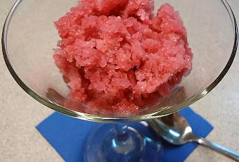 Pour un dessert glacé tout frais et léger voici un granité aux raisins. Idéal pour clore un repas sur une note fruitée.Et c'est si simple à préparer, il faut du jus de fruit et du sucre. On fait bouillir, on congèle 6 à 8 heures, puis il ne reste qu'à gratter avec une fourchette pour faire des paillettes qu'on servira dans une coupe élégante.
