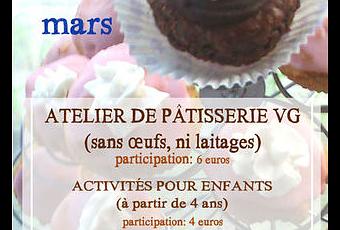 Samedi 17 mars à 14h30 : apprendre à préparer des pâtisseries végétaliennes (sans oeufs,ni laitages).