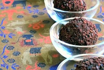Réduire en poudre grossière les pépites de cacao cru avant de les mélanger aux autres ingrédients.