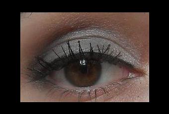 Un fard blanc givré dans le coin interne, Sula Smoke And Mirrors sur la paupière mobile, Benefit Navy dans le creux