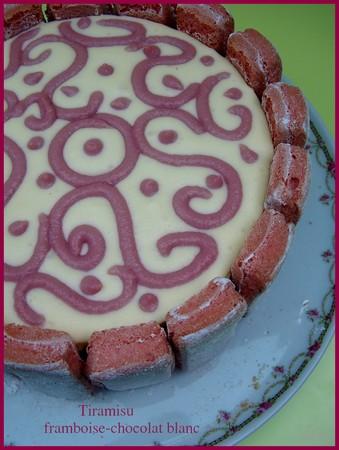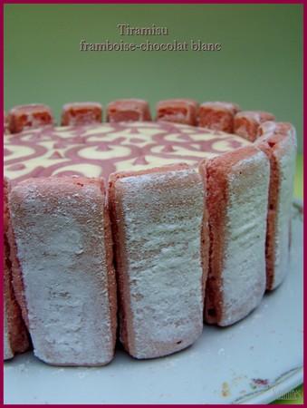 Pour ce dessert j'ai repris ma recette du tiramisu en remplaçant le café par du jus de framboise et en ajoutant du chocolat blanc au mélange oeuf-mascarpone (du coup j'ai diminué les proportions de sucre par 2)