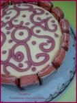 Réfrigérez au moins 12 h, finissez la déco avant de servir. (j'ai mis un reste de ganache qu'il me restait de macarons + des framboises + les biscuits de Reims)