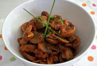 Ajoutez les champignons, du sel et le concentré de tomates, et bien mélangez le tout.