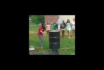 Une femme fait imploser un baril en le chauffant puis en le refroidissant. Maintenant la même chose avec un wagon citerne.