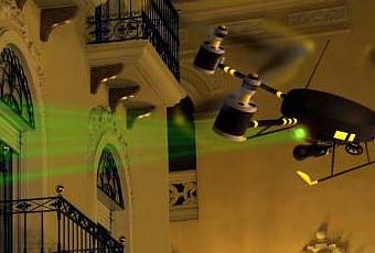 Lot Amoros est un artiste espagnol, qui se définit comme un “ingénieur informatique & un antiartiste transdisciplinaire”. Son GuerrillaDrone servira à réaliser “des interventions audiovisuelles dans l’air public en utilisant la réalité mixée”, de façon à créer des “zones temporairement augmentées”, en référence aux zones autonomes temporaires (TAZ) d’Hakim Bey. Le tout est réalisé avec des logiciels et du matériel libre, grâce au projet ArduCopter, utilisant Arduino.