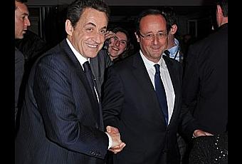 Quant aux deux principaux candidats à l'élection présidentielle française [dont la photo, où on les voit se serrer la pince, provient d'ici], ils veulent caresser dans le sens du poil, qu'ils ont dans leur main, ces Français qui ne veulent pas travailler plus. L'un comme l'autre se proposent donc, chacun à sa façon, pour leur complaire, de ponctionner les riches, les boucs émissaires de la mauvaise gestion depuis près de 40 ans, de la gauche comme de la droite, auxquelles ils appartiennent, et qui conduit tout droit le pays vers une situation à la grecque.