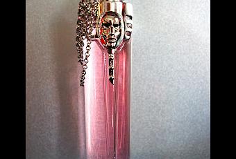 - Son packaging est à tomber ! Une bouteille ornée d'un masque mystérieux, d'une bague (qui symbolise parfaitement la femme) reliée à plusieurs chaînes, et un parfum coloré d'un rose subtil et délicat... Pfiouuu, c'est de la balle, il pourrait trôner sur le plus beau meuble de mon salon sans problème tel un trophée...