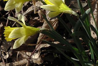 Dans les bois, les premières jonquilles (Narcissus pseudonarcissus) sont fleuries.