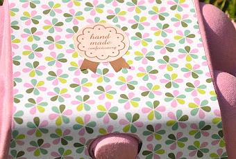J'ai reproduit le modèle de l'étiquette de la boite sur du papier a trèfles (l'un de mes préférés) et je l'ai applique sur la boite grâce a la colle en bombe multi-usage.J'ai rajoute sur le dessus comme a l'intérieur ces adorables stickers "handmade" dénichés sur le site de Ma Jolie Papeterie :