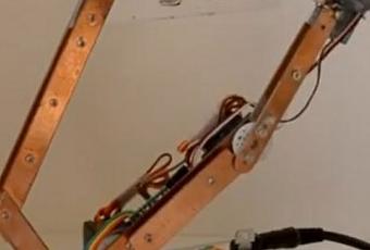 Cette horloge est en fait un bras robotisé derrière lequel se trouve une plaque de plexiglas sur laquelle le robot peut écrire l’heure. Ce bras est composé de 4 moteurs, 2 sont utilisés pour faire bouger le bras, un pour le crayon et un dernier pour effacer les chiffres. Le robot est commandé par un kit Rbbb Arduino. L’horloge ne fait que 15 centimètres de hauteur et ekaggrat, le concepteur, a utilisé de minuscules composants pour la construire. Malgré l’aspect cheap, elle propose un design inspiré par le genre steampunk qui lui donne beaucoup de charme.