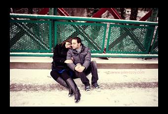 La neige en île-de-France… tellement rare !… La neige enfin du côté de chez nous… j’en rêvais ! Un an plus tôt elle y était tombée en abondance, sur plusieurs jours, et je n’avais pu faire aucun cliché, trop prise par mon déménagement… quelle frustration cela avait été ! Alors à peine ai-je aperçu les premiers flocons virevolter en ce jour de Février que j’attrapai mon téléphone pour demander quels futurs parents saisiraient l’occasion unique d’une balade les pieds au frais. Karine et Arnaud ont répondu présents sans hésiter et je les en remercie car ils ont fait mon bonheur !… En plus, ces amoureux-là sont magnifiques… tellement d’amour, de tendresse, de complicité et même de sensualité, c’est beau à voir…