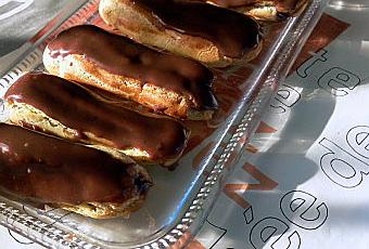 Il ne vous reste plus qu'à monter les éclairs en les garnissant de crème pâtissière au chocolat, puis de les tremper dans le glaçage au chocolat. Mettre au frais les éclairs .