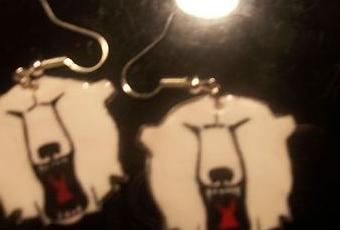 Y'a de cela 15 jours je me suis dit que ça pourrait être sympa d'avoir des boucles d'oreille avec le symbole de l'équipe de hockey de Berlin (l'ours polaire) et puis j'ai repensé à un article de Mirabelle sur son blog où elle présentait des articles de sa boutique de bijoux en disant qu'elle prenait aussi les commandes spéciales. J'avais déjà commandé chez elle et j'avais été satisfaite alors je lui ai envoyé la photo du logo et elle a accepté de me les faire sans obligation d'achat. 2/3 jours plus tard elle m'envoie une photo des boucles presque finies et là je dis banco ! Elles sont trop belles ! Pour un prix mini en plus. Je les ai reçues mercredi, 1 semaine pour la fabrication et l'expédition je dis chapeau. J'adore ! Je suis satisfaite à 200 %, je ne peux que vous conseiller d'aller voir sa boutique et de pas hésiter à la contacter si vous avez une idée de bijou en tête.