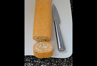 Étaler cette garniture sur le biscuit et enrouler le tout dans du film étirable.