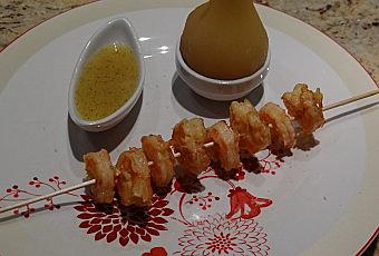 les crevettes d'une sauce aux agrumes (jus d'orange + beurre vanillé).