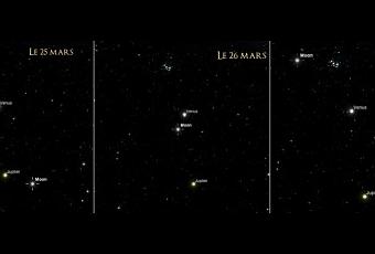 25 mars : La Lune s’invite auprès de Jupiter. Conjonction avec Vénus, le 26 mars.