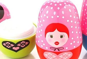 Je suis déjà fan des petites poupées russes pour leurs rondeurs et leurs pommettes poudrées mais alors là...à cette instant même, je fonds littéralement devant ce baume à lèvre ou cette crème ultra girly avec ce mélange vert pomme, rose à fille et petit pois!