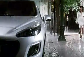 La nouvelle Peugeot 308 a du caractère. Et devant elle, apparemment, les filles aiment bien se balader en petite robe sous la pluie avant de l’embrasser.