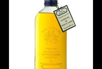 Reconnu par tous les amateurs comme un des temples du whisky à Paris, le Harry’s Bar se devait de proposer une bouteille d’exception pour fêter ses 100 ans d’existence. Le choix s’est porté sur un whisky réputé pour ses qualités uniques et son légendaire goût tourbé. Il provient de la plus petite distillerie d’Ecosse, Edradour, racheté en 2002 par la maison de négoce Signatory Vintage, grand spécialiste des mises en bouteilles fût par fût, sans filtrage à froid et sans coloration. Distillé en 1995, il a été mis à vieillir dans le fût n°49 ayant contenu du Bourbon Maker’s Mark et titrant 61% de volume alcool. Pour la mise en bouteille, le taux fut ramené à 57,1%. Complexe, parfaitement équilibré entre des notes florales légèrement épicées et la douce âcreté de la tourbe, il est gras en bouche et possède une finale exceptionnellement longue. Chaque bouteille est numérotée à la main, estampillée « Harry’s Bar », avec au dos l’histoire du lieu. Cette série limitée à 229 exemplaires est en vente exclusivement sur place ou à La Maison du Whisky (145 €).