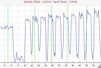 3 tours d’échauffement, quelques étirements et c’est parti ! Départ correct et comme souvent sur ce genre de séance on a tendance à accélérer à chaque tour, pour finir sur presque du 17km/h ! En plus ça passe tout seul !