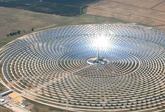 Cette centrale située en Andalousie entre Séville et Cordoue se compose de 2650 panneaux solaires de 120 mètres carrés chacun et s’étend sur 195 hectares. Les panneaux reflètent le soleil sur la tour avec une concentration d’énergie 1000 fois plus élevée que celle du sol. Cette énergie ainsi produite est ensuite conservée dans une cuve remplie de sels fondus, à une température très élevée et supérieure à 500 degrés. Ces sels fondus permettent enfin de produire de la vapeur qui fait fonctionner une turbine qui produit de l’électricité.