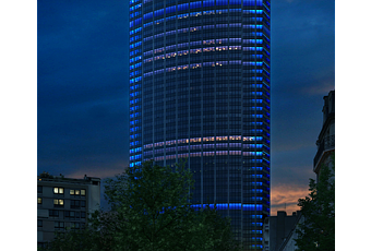 L’éclairage LED RVB (Rouge Vert Bleu) fourni par Philips, permettra toutes les nuances imaginables tout en assurant une consommation réduite de 90% par rapport à l’ancienne installation. 25KW de puissance suffiront ainsi pour égayer le monolithe de 210 mètres, soit l’équivalent d’une dizaine de machines à laver AAA et seulement 0.2% de la « puissance » de la tour (si vous me permettez ce raccourci)