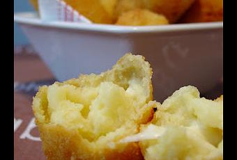 Prélever un peu de purée de pommes de terre, placer en son coeur 2 dés de mozzarella et former des croquettes de la forme de cylindres d'environ 5-6 cm de hauteur. Les placer au fur et à mesure dans un plat, jusqu'à épuisement de la purée de pommes de terre.