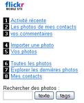 Vous vous connectez sur m.flickr.com avec vos identifiants Yahoo, puis vous cliquez sur “Importer une photo” (#4). On vous demande ensuite de s??lectionner la photo ?? importer. Lorsque vous cliquez sur Parcourir, le navigateur du mobile va directement ouvrir l’appareil photo. Vous n’avez plus qu’?? viser et shooter. (le navigateur vous demande confirmation).