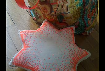Bon, j'ai craqué quand même !! J'ai ramené mon petit coussin étoile fluo qui me plaisait tant depuis des semaines sur le site Monoprix ! Et maintenant, le plus dur, vais-je résister?