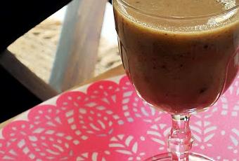 Le jus d'un citron ou de deux8 oz d'eau (ou plus en fonction de la consistance souhaitée)2 ou 3 petits pruneaux dénoyautés1 figue1 cuillère à café de maca1 cuillère à café de jus de gingembre (facultatif)Mettre à tremper 30 minutes à 1 heure la figue et les pruneaux dans 8 oz d'eau et le jus de citron puis mixer avec le maca et le gingembre.