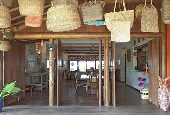 Côté déco je trouve très agréable ce grand volume qu’offre le salon avec finalement peu de décorations mais la présence du bois d’eucalyptus pour l’extérieur et autres essences exotiques à l’intérieur ainsi que le mobilier Brésilien créent une ambiance exotique accueillante.