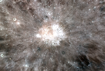 Cratère Copernic photographié dans le visible et l'ultraviolet par LRO