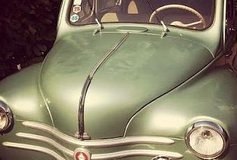 Mon enfance a été plus que bercée par le monde de l'automobile... mais celle-ci, cette 4 CV, a toujours été une de mes préférées... Sa couleur, ses formes, sa fière et douce allure, son odeur qui vous saute au nez (et croyez-moi, c'est rien de le dire !) lorsqu'on ouvre ses portes... Autant de souvenirs qui me bercent...