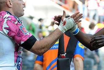 Le Stade Française assure au MMArena en faisant exploser les Agenais ! Djibril Camara félicite son équipier argentin, Felipe Contepomi