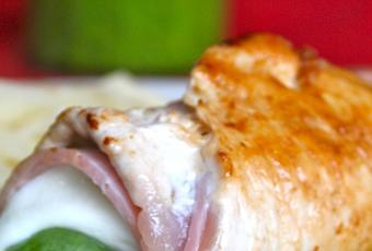 Il y a quelques jours, je vous avais présenté ma recette de pesto d’épinards aux noix et aujourd’hui, je vous propose un plat parfait pour déguster cette petite sauce verte. Je me suis inspirée d’une spécialité Italienne, le saltimbocca (littéralement « saute en bouche ») qui à la base de fait avec du veau, du jambon de Parme et de la sauge. Bon, ok, j’ai un peu détourné la recette originale, j’avais envie de moelleux et de fondant avec la mozarella et je n’avais pas de jambon de Parme. Résultat, un plat simple à réaliser et qui visuellement et gustativement en épate plus d’un ! à commencer par mon homme qui s’est extasié sur son assiette, lui qui est plutôt critique, ne m’a fait que des compliments sur mon plat !