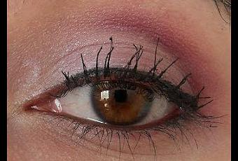 Pour ce look j'ai utilisé un violet bleuté sur toute la paupière mobile (dommage qu'il n'apparait pas correctement sur les photos!) une couleur aubergine dans le V externe et une couleur bourgogne assez foncé dans le creux. Tous ont un fini irisé. Puis finalement, dans le V interne j'ai appliqué le côté rose de mon crayon enlumineur pour les yeux de Tarte.