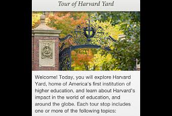 Il est maintenant possible de visiter les pavillons, lieux de la prestigieuse université via une application iPhone : http://www.harvard.edu/visitors/mobile-tour