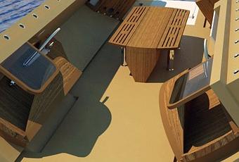 L’agence britannique d’architecture navale BMT Nigel Gee vient de dévoiler un nouveau concept de plateforme récréative pliante à déployer sur l’eau. Bien que conçu explicitement pour le yachting privé, la solution utilisée dans ce projet peut servir dans des domaines aussi divers que la gestion d’opérations militaires, des bases de loisir collectives, des événements réunissant des journalistes ou encore une aire d’atterrissage pour hélicoptère. La plateforme mesure 10 m par 8 m une fois déployé. Elle peut également offrir un espace supplémentaire s’il est amarré à l’arrière d’un yacht ou stabilisée. En position refermé, la plateforme peut être stockée dans la soute de navires privés ou publics, pouvant être mis en place grâce à des grues portuaires.
