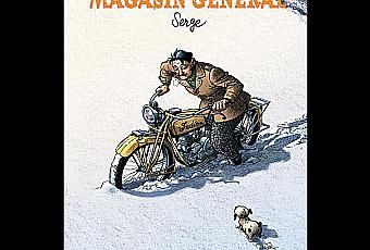 Récemment, j’ai décidé de me plonger dans la lecture de « Magasin général ». Cette série co-écrite par Régis Loisel et Jean-Louis Tripp est actuellement composée de sept albums et n’est pas encore, à ma connaissance, terminée. Il y a quelques jours, j’ai lu le premier tome intitulé « Marie ». Cette lecture m’a procuré beaucoup de plaisir. C’est ainsi que je me suis plongé dans la découverte du second album intitulé « Serge ». Toujours édité chez Casterman, cet ouvrage est de qualité en tant qu’objet. Il est agréable au toucher. L’histoire s’étale sur soixante-dix pages. Cela dépasse la moyenne habituelle de ce genre de bouquin. Son prix avoisine les quinze euros et sa première parution date de deux mille six. La couverture nous présente un personnage jusqu’alors inconnu qu’on suppose être le Serge du titre. Il chevauche une petite moto jaune dans un paysage enneigé. Il semble attiser la curiosité d’un petit chiot situé en bas à droite de l’illustration. Il ne me restait plus qu’à m’immerger dans les premières pages pour savoir plus sur ce nouveau protagoniste…