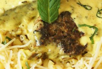 J’ai simplement fait revenir 2 tranches de cakes au lentilles dans un filet d’huile d’olive (comme un steak), puis j’ai fait une sauce à la SAVORA comme ici et j’ai ajouté un peu de menthe ciselée pour la fraîcheur. Le tout servi avec des pâtes et un peu de fromage râpé.