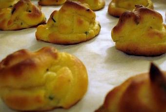 Puis saisissez-vous d’une poche à douille avec une petite étoile au bout. Ou d’un sac en plastoc avec un trou au fond (moins chic, mais bon…). Sur une plaque vêtue de papier sulfurisé, moulez vos archiduchesses façon Gaudi, en imprimant un roulis circulaire à votre poignet. Est-ce clair? Non! Zut alors! Enfournez à 190° et laissez dorer une dizaine de minutes, en pensant exactement à quoi vous voulez.