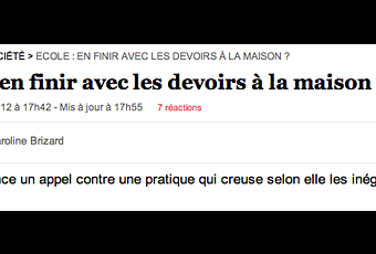“La FCPE, première organisation de parents d’élèves, lance aujourd’hui son appel pour que les écoliers ne rapportent plus de devoirs à faire à la maison. Au motif que cette pratique creuse les inégalités, entre les enfants que les parents peuvent aider, et les autres.”