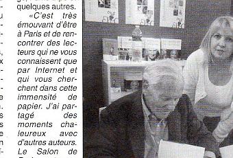 L’auteure Marie-Chantal Guilmin obtient un article de presse dans le quotidien La Montagne Noire, en France. Celle-ci a publié aux Éditions Dédicaces le roman biographique intitulé « Elsa Z, tant à raconter » pour lequel elle a décroché la Médaille d’Honneur ZAKHOR pour la Mémoire de la Shoah 2011. Elle était présente au Salon du livre de Paris, au stand Y39 des Éditions Dédicaces. L’auteure est photographiée ci-dessous avec l’homme de lettres Jean d’Ormesson, membre de l’Académie française.