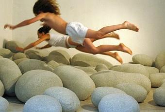 Les Rolling Stones, vieilles badernes, roulent encore, tout frippés, mais le rock essouflé de nos grabataires pepères n'a guère de relève écartelé entre les arty new yorkais et la brit pop ventrue et grasse, sans oublier l'électro pop compulsive et vaine. Faut-il donc euthanasier le rock ou est-il déjà mort dans ce song coma nauséux fait de revivals et de rééditions muséaux ? Les pierres ne roulent plus, la preuve, ces cailloux mous/guimauve qui servent de terrain de jeux à des enfants bien trop cultivés, déjà. Living Stones, pierres vivantes, elles (smarin). Soft rock, Soft Machine, annexe de la plage d'Etretat et si les Stones sont devenus des gars laids, la chambe d'amis est un espace ludique envahi de galets duveteux et ouatés. Bienvenue à la tyrannie du moelleux !