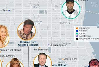 New York c’est la Statue de la Liberté, le Brooklyn Bridge, la 5ème Avenue… et des milliers de célébrités! Ci-dessus, une infographie réalisée par le site Rentenna.com qui met en lumière les appartements et maisons de plus de 100 famous people à Manhattan et à Brooklyn. Vous aurez ainsi plus de chances de les croiser!