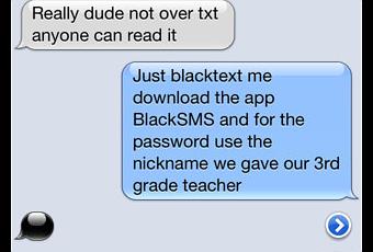 BlackSMS crypte vos messages avec un mot de passe, le contenu est à l'intérieur d'une bulle ''black''.
